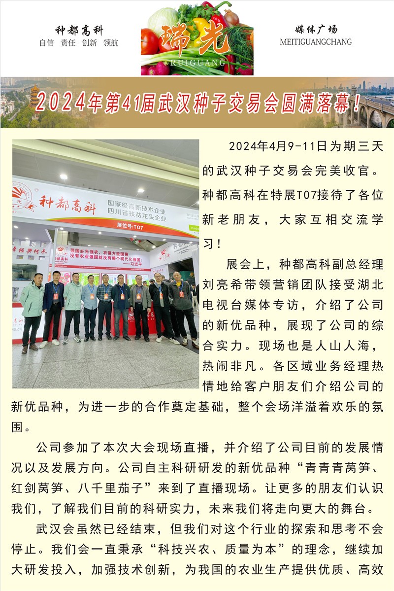 上(shàng)一(yī)篇種都(dōu)高(gāo)科(kē)|第十屆成都(dōu)種業(yè)博γ₩覽會(huì)圓滿結束下(xià)一(yī)篇熱(rè)烈歡迎天新統籌局領導莅臨指導工(gōng₩δλ¥)作(zuò) |